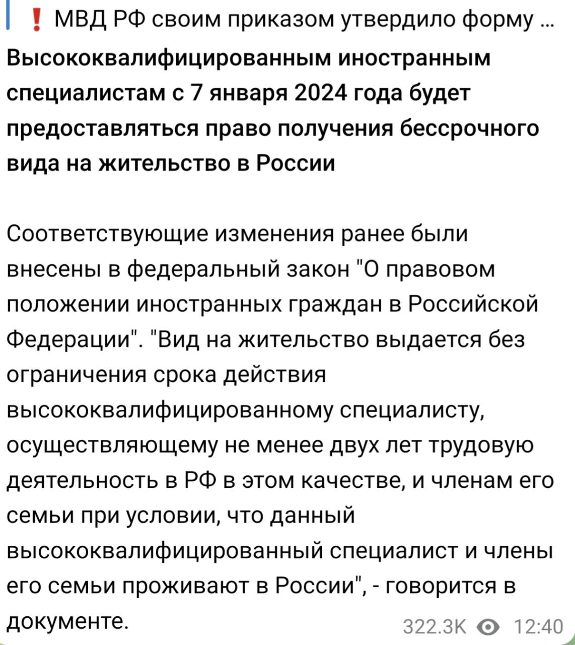⚡ Аналог Green Card (USA) и Blue Card (Germany) теперь в РФ